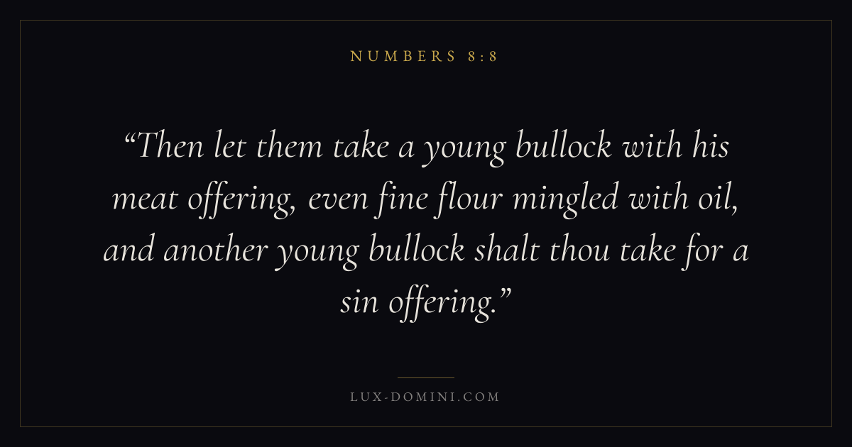 Then let them take a young bullock with his meat offering, even fine flour mingled with oil, and another young bullock shalt thou take for a sin offering.