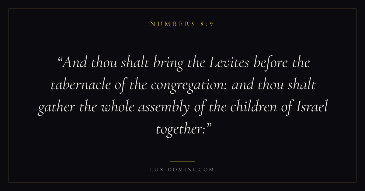 And thou shalt bring the Levites before the tabernacle of the congregation: and thou shalt gather the whole assembly of the children of Israel together: