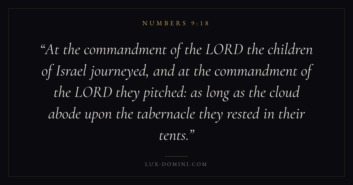 At the commandment of the LORD the children of Israel journeyed, and at the commandment of the LORD they pitched: as long as the cloud abode upon the tabernacle they rested in their tents.
