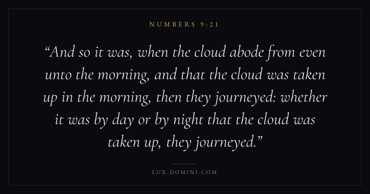 And so it was, when the cloud abode from even unto the morning, and that the cloud was taken up in the morning, then they journeyed: whether it was by day or by night that the cloud was taken up, they journeyed.