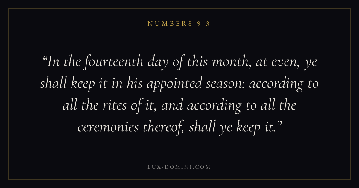 In the fourteenth day of this month, at even, ye shall keep it in his appointed season: according to all the rites of it, and according to all the ceremonies thereof, shall ye keep it.