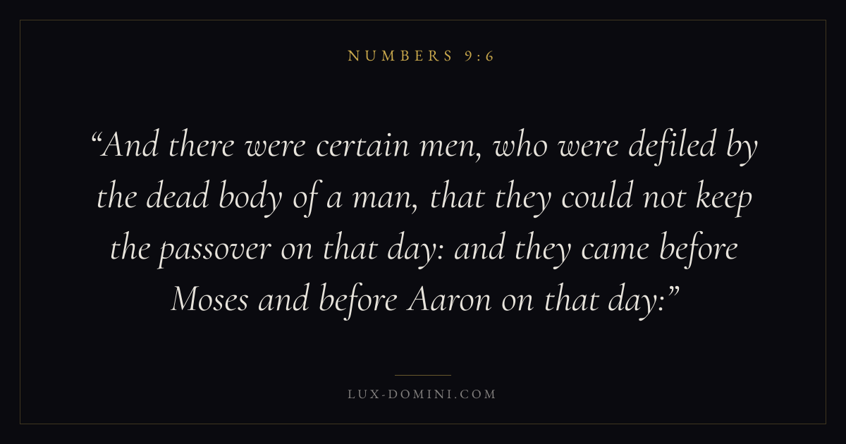 And there were certain men, who were defiled by the dead body of a man, that they could not keep the passover on that day: and they came before Moses and before Aaron on that day: