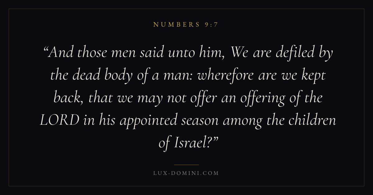 And those men said unto him, We are defiled by the dead body of a man: wherefore are we kept back, that we may not offer an offering of the LORD in his appointed season among the children of Israel?