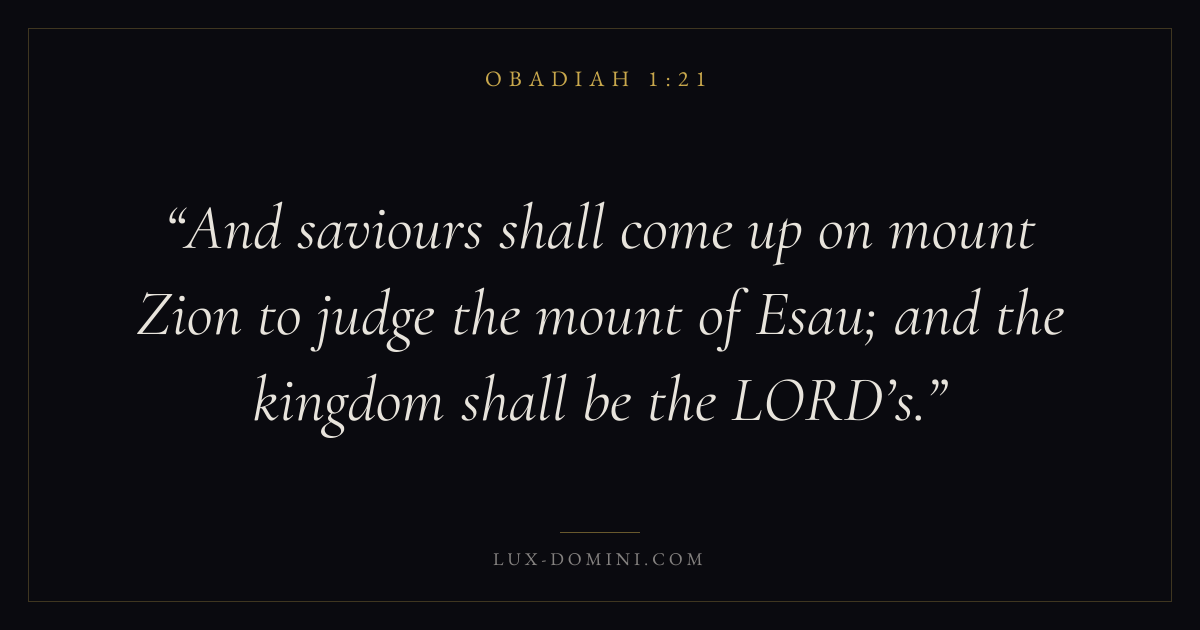 And saviours shall come up on mount Zion to judge the mount of Esau; and the kingdom shall be the LORD’s.
