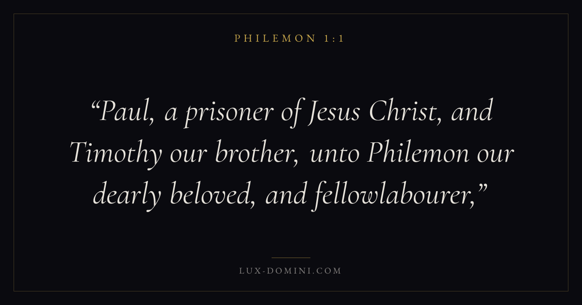 Paul, a prisoner of Jesus Christ, and Timothy our brother, unto Philemon our dearly beloved, and fellowlabourer,