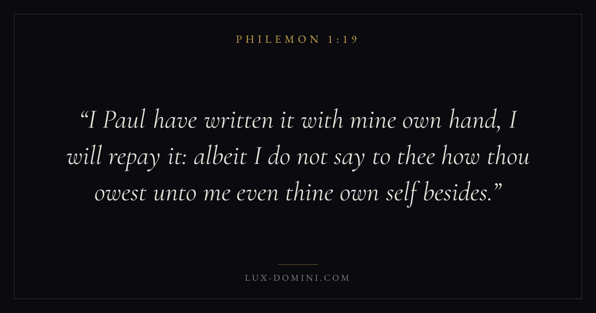 I Paul have written it with mine own hand, I will repay it: albeit I do not say to thee how thou owest unto me even thine own self besides.
