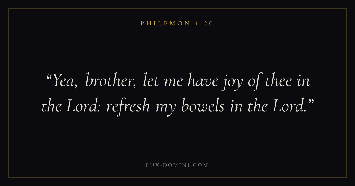 Yea, brother, let me have joy of thee in the Lord: refresh my bowels in the Lord.