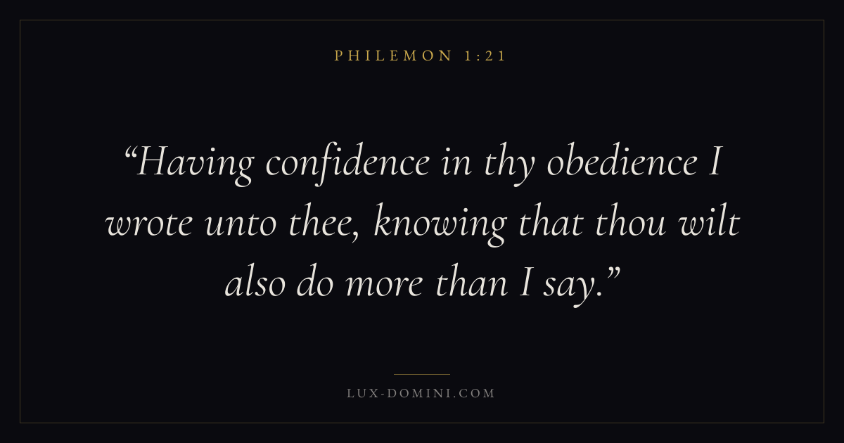 Having confidence in thy obedience I wrote unto thee, knowing that thou wilt also do more than I say.