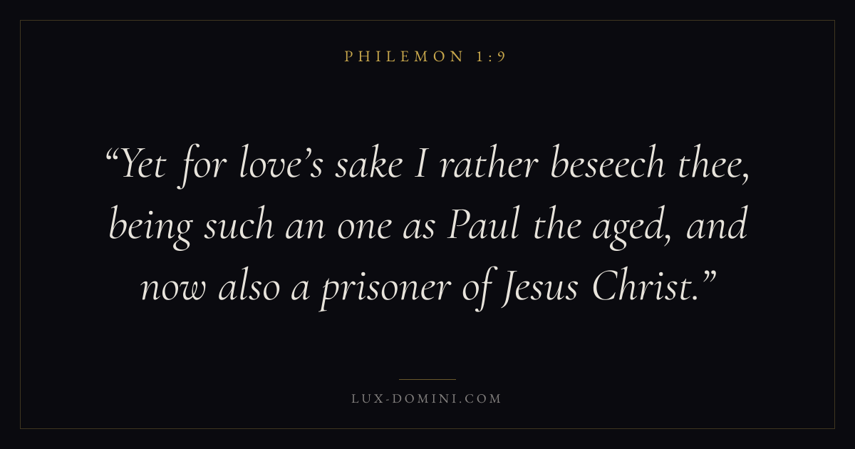 Yet for love’s sake I rather beseech thee, being such an one as Paul the aged, and now also a prisoner of Jesus Christ.