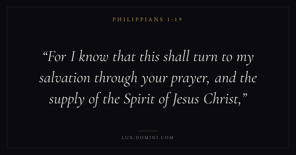 For I know that this shall turn to my salvation through your prayer, and the supply of the Spirit of Jesus Christ,