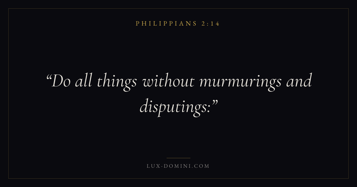 Let there be no brawls, strifes, or contentions. The object of the apostle here is, probably, to illustrate the sentiment which he had expressed in Philippians 2:3-5 , where he had inculcated the general duties of humbleness of mind, and of esteeming others better than themselves, in order that that spirit might be fully manifested, he now enjoins the duty of doing everything in a quiet and gentle manner, and of avoiding any species of strife; see the notes at Ephesians 4:31-32 .