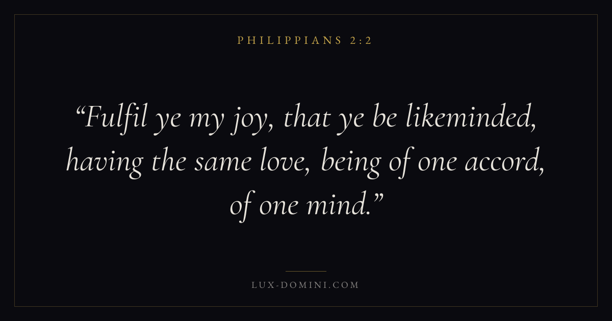 Fulfil ye my joy, that ye be likeminded, having the same love, being of one accord, of one mind.