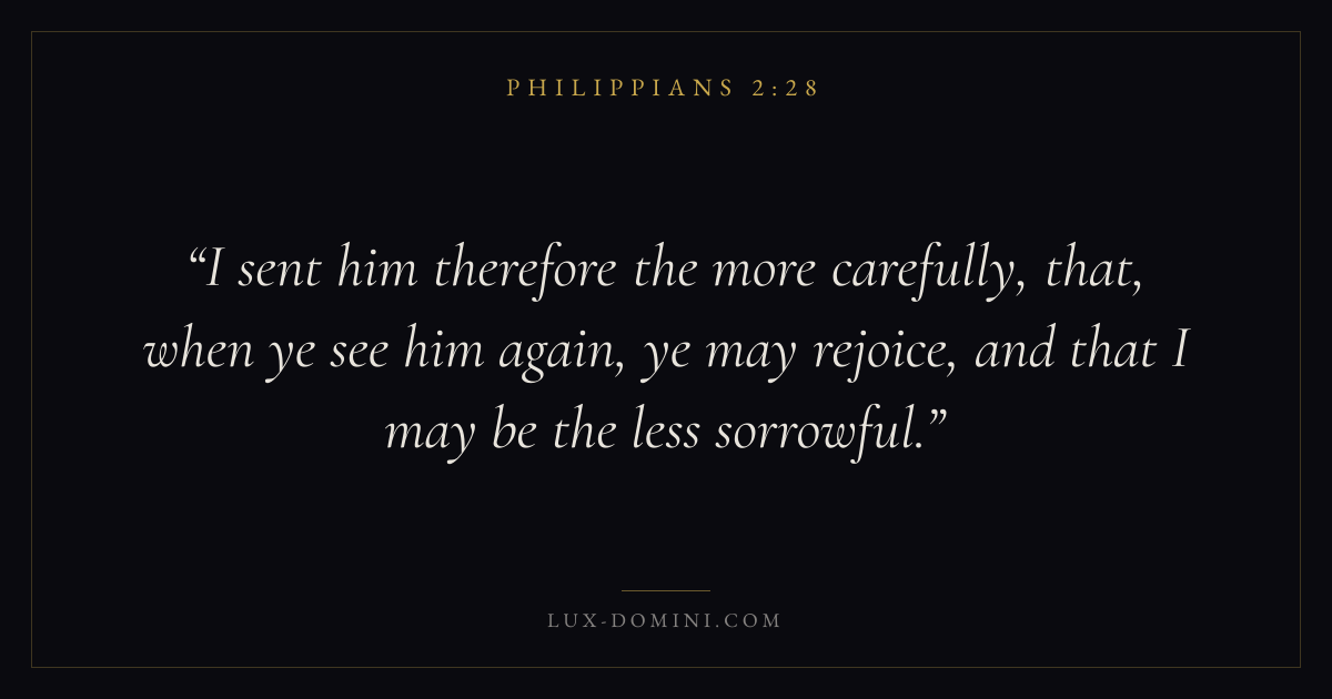 I sent him therefore the more carefully, that, when ye see him again, ye may rejoice, and that I may be the less sorrowful.