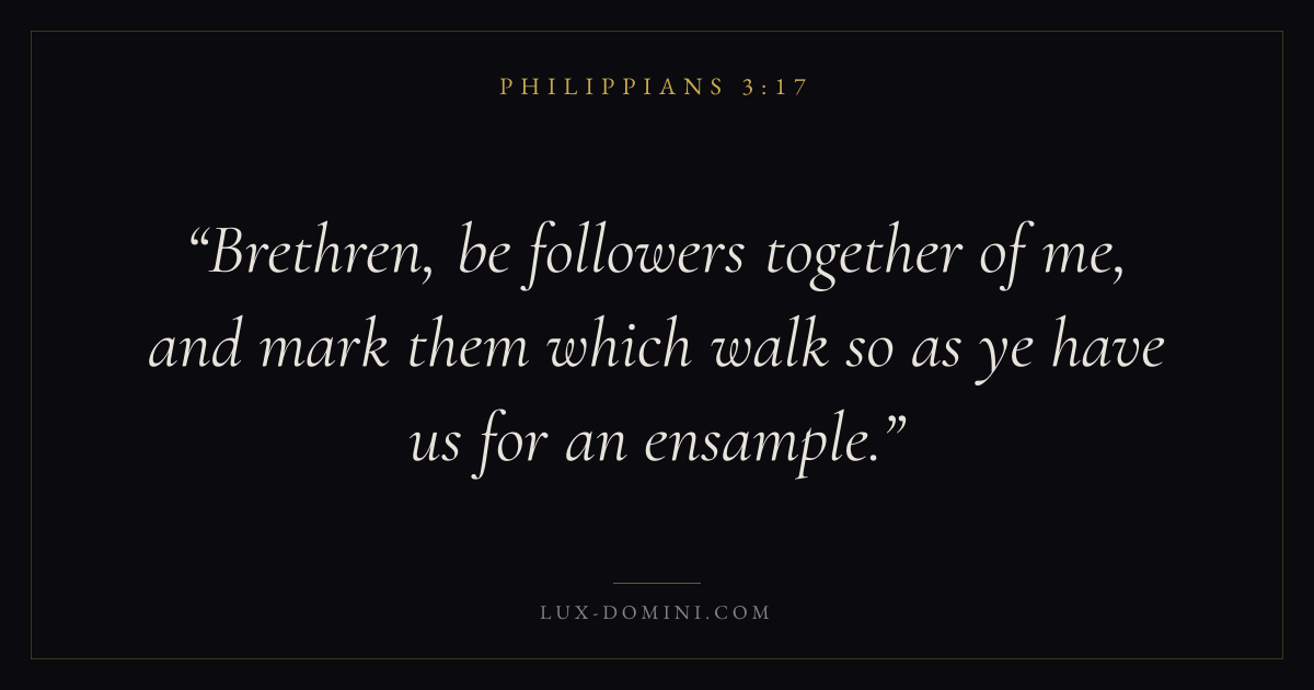 Brethren, be followers together of me, and mark them which walk so as ye have us for an ensample.