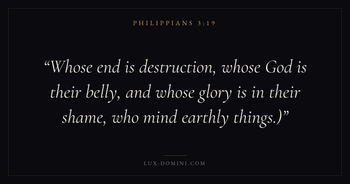 Whose end is destruction, whose God is their belly, and whose glory is in their shame, who mind earthly things.)
