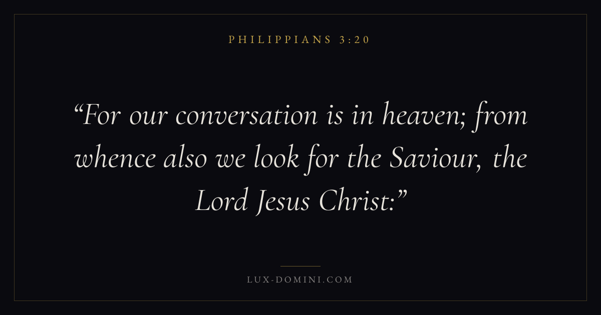 For our conversation is in heaven; from whence also we look for the Saviour, the Lord Jesus Christ: