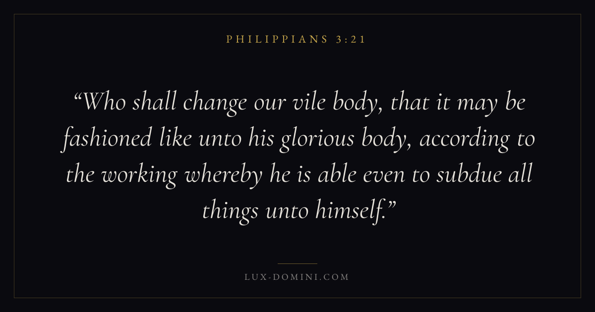 Who shall change our vile body, that it may be fashioned like unto his glorious body, according to the working whereby he is able even to subdue all things unto himself.