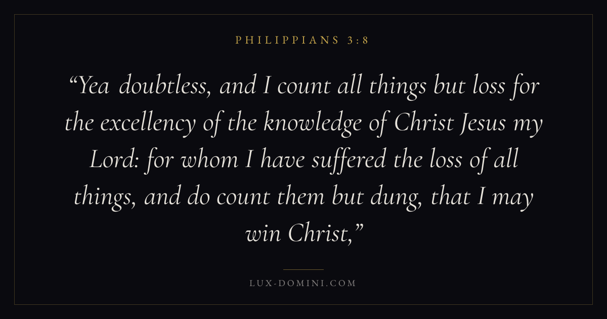 Yea doubtless, and I count all things but loss for the excellency of the knowledge of Christ Jesus my Lord: for whom I have suffered the loss of all things, and do count them but dung, that I may win Christ,