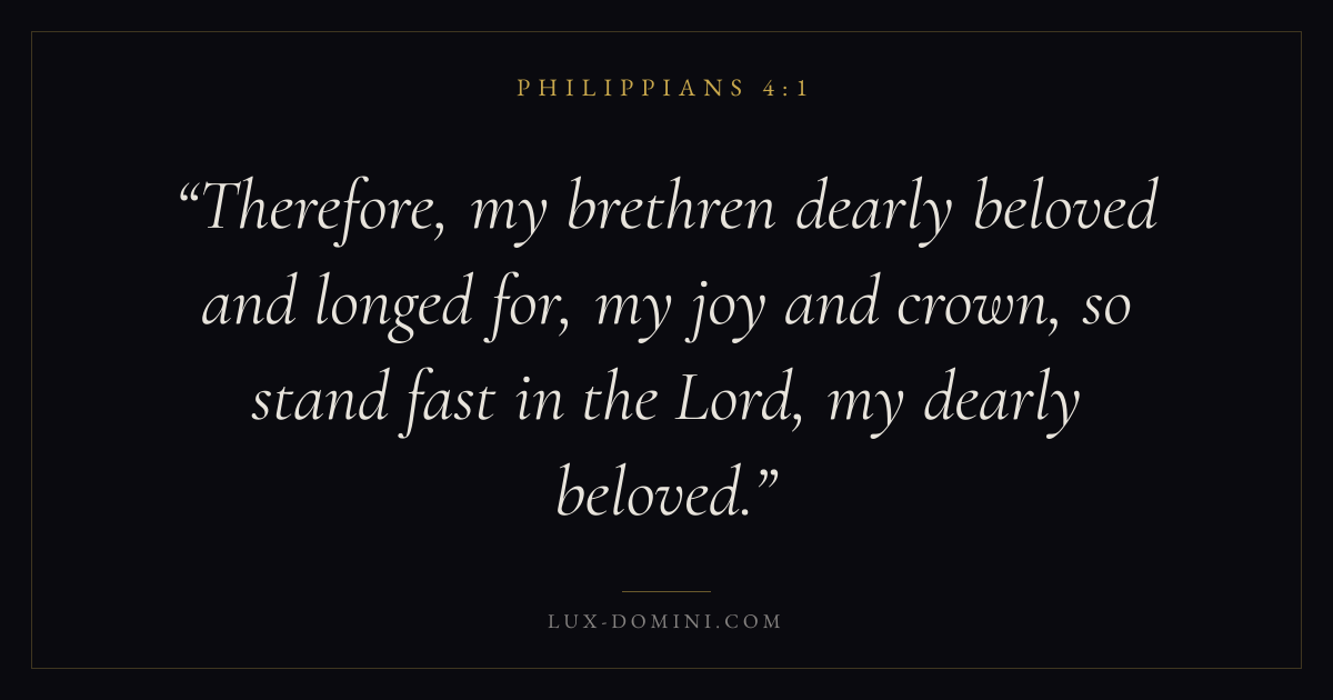 Therefore, my brethren dearly beloved and longed for, my joy and crown, so stand fast in the Lord, my dearly beloved.