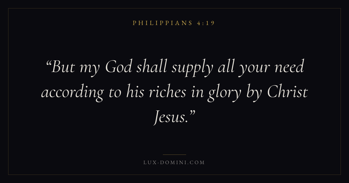 But my God shall supply all your need according to his riches in glory by Christ Jesus.