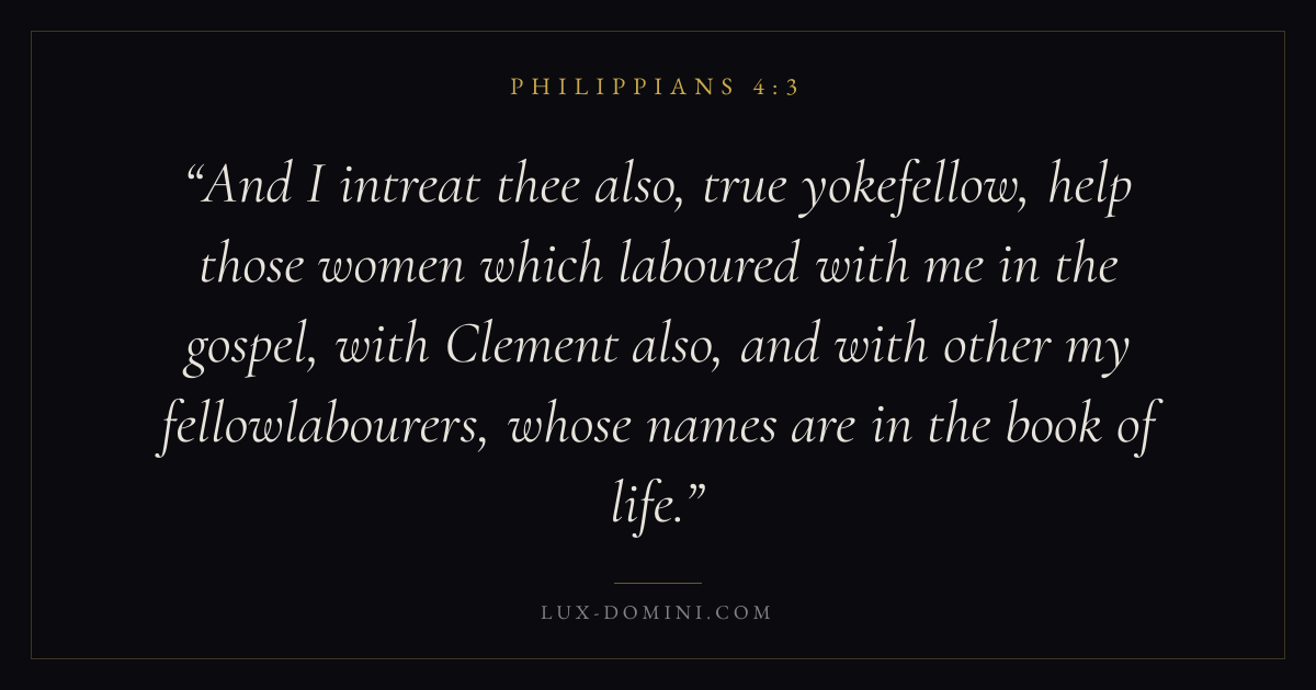 And I intreat thee also, true yokefellow, help those women which laboured with me in the gospel, with Clement also, and with other my fellowlabourers, whose names are in the book of life.