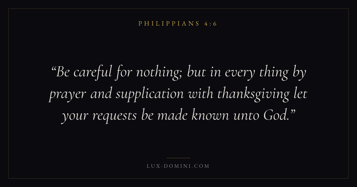 Be careful for nothing; but in every thing by prayer and supplication with thanksgiving let your requests be made known unto God.