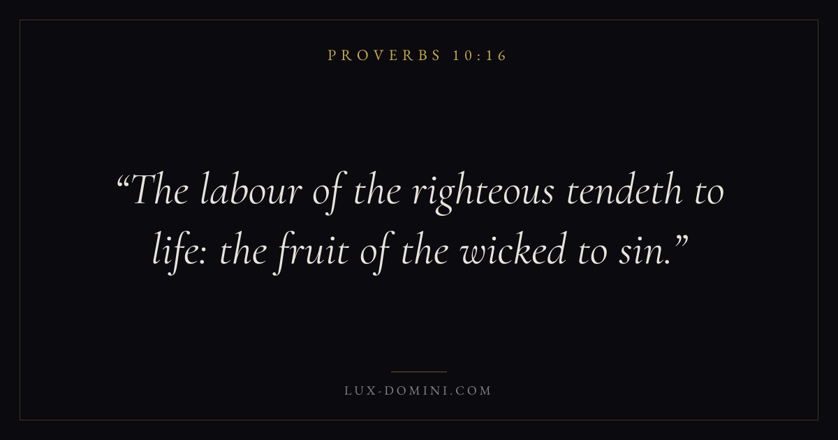 The labour of the righteous tendeth to life: the fruit of the wicked to sin.