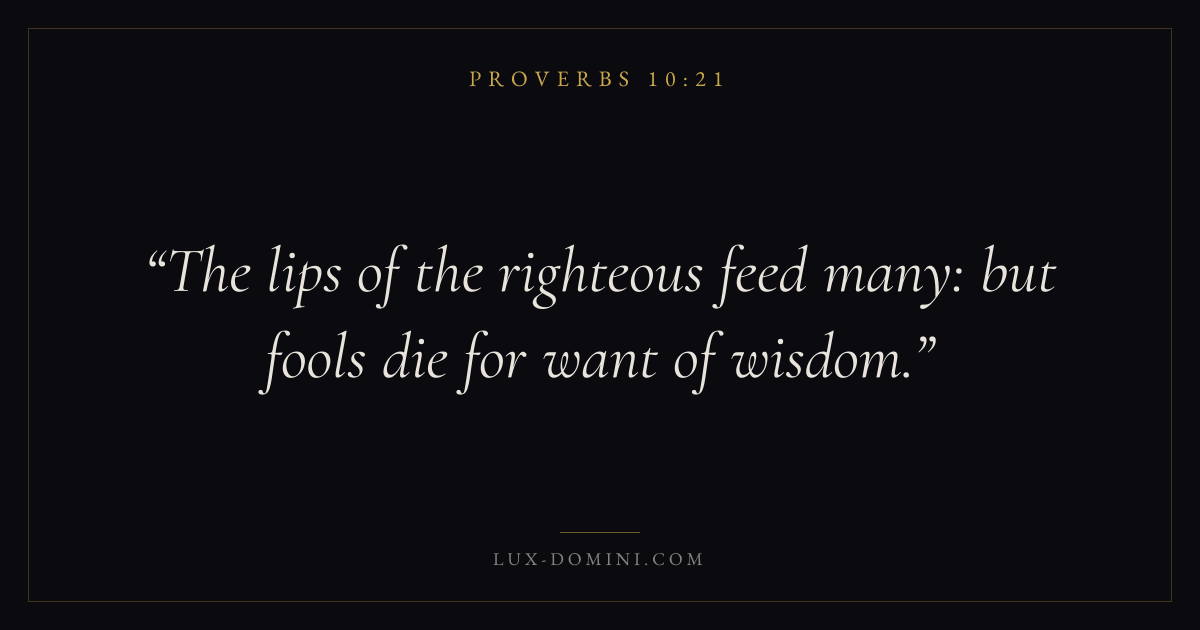 The lips of the righteous feed many: but fools die for want of wisdom.
