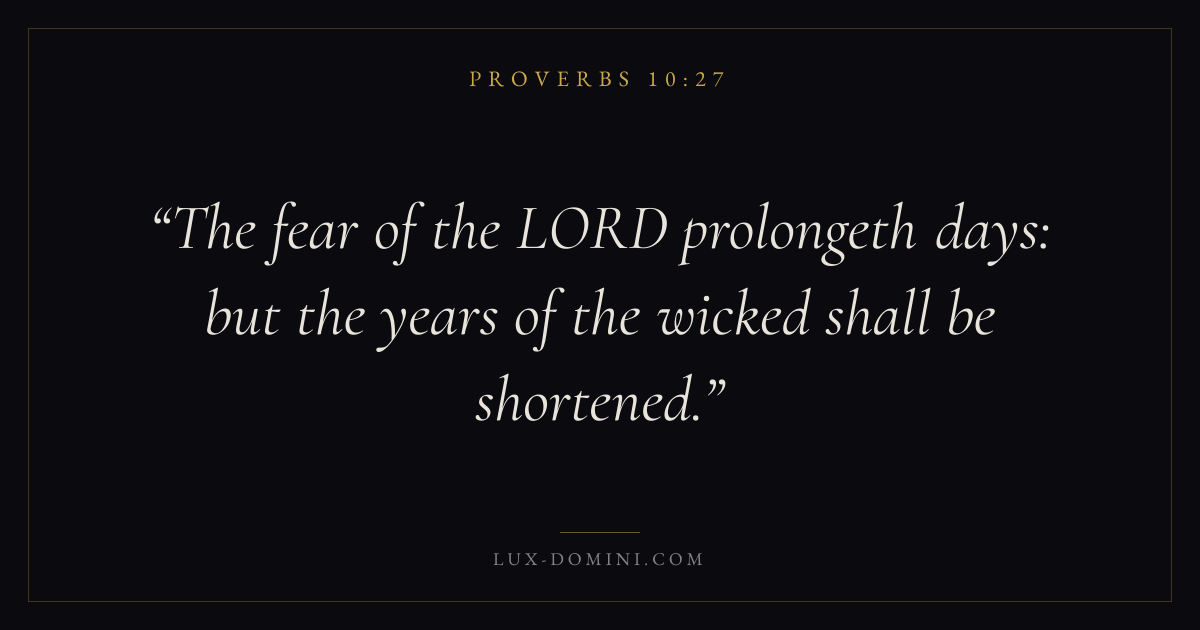 The fear of the LORD prolongeth days: but the years of the wicked shall be shortened.