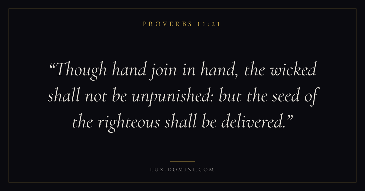 Though hand join in hand, the wicked shall not be unpunished: but the seed of the righteous shall be delivered.