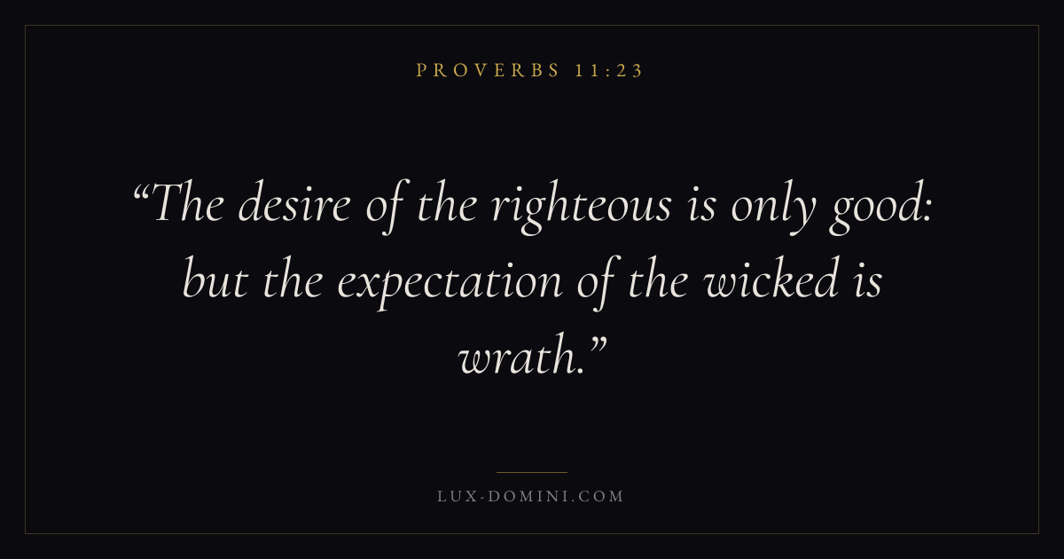 The desire of the righteous is only good: but the expectation of the wicked is wrath.