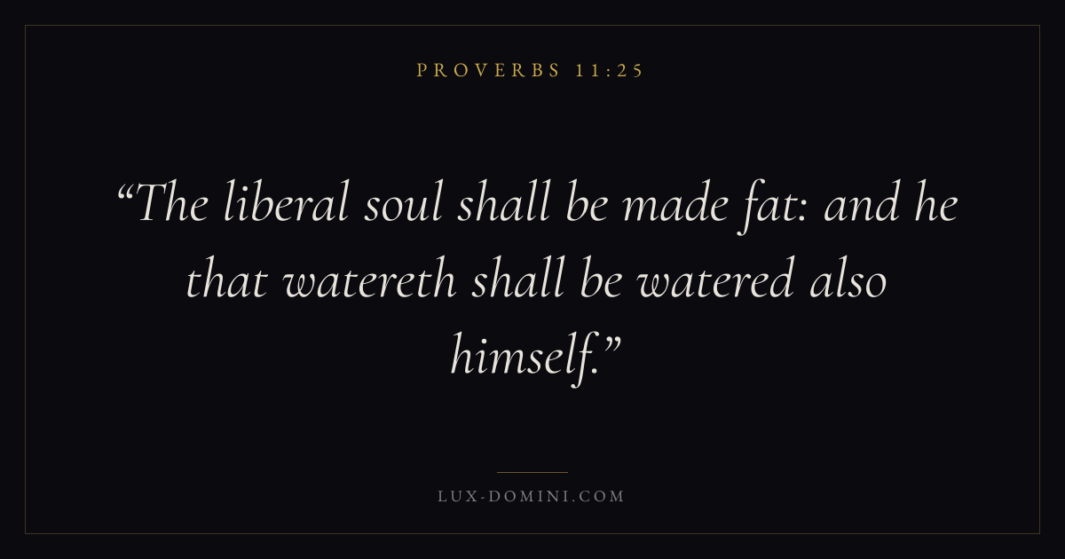 The liberal soul shall be made fat: and he that watereth shall be watered also himself.