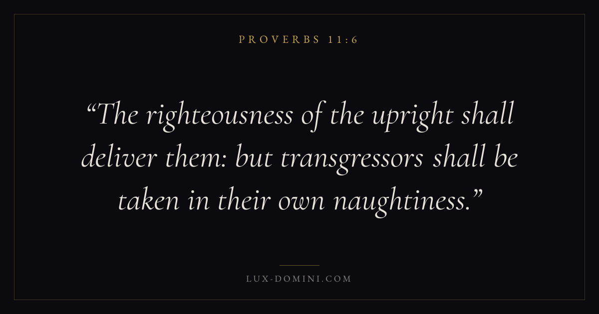 The righteousness of the upright shall deliver them: but transgressors shall be taken in their own naughtiness.