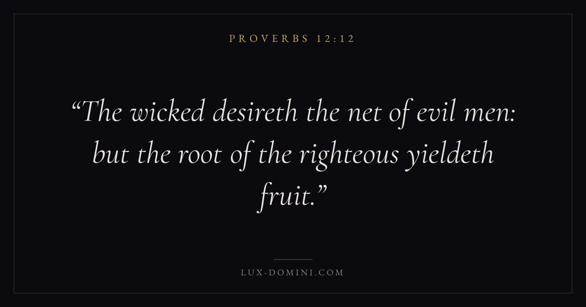 The wicked desireth the net of evil men: but the root of the righteous yieldeth fruit.