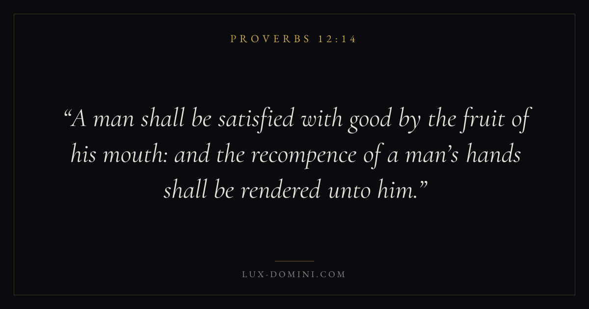 A man shall be satisfied with good by the fruit of his mouth: and the recompence of a man’s hands shall be rendered unto him.
