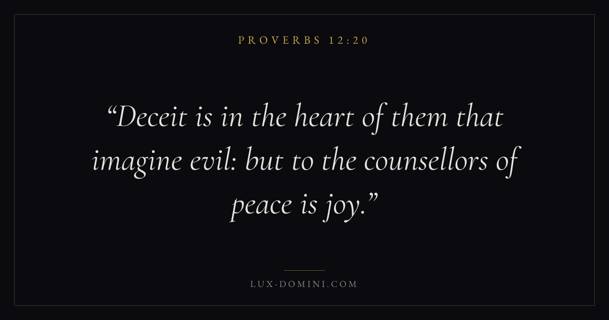 Deceit is in the heart of them that imagine evil: but to the counsellors of peace is joy.