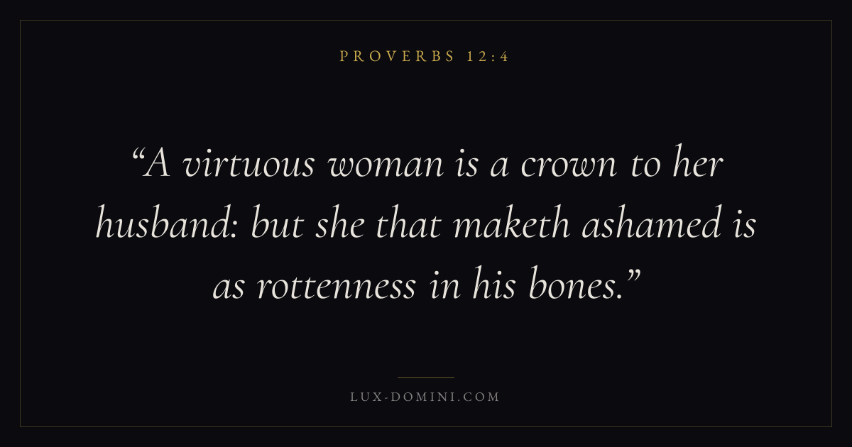 A virtuous woman is a crown to her husband: but she that maketh ashamed is as rottenness in his bones.