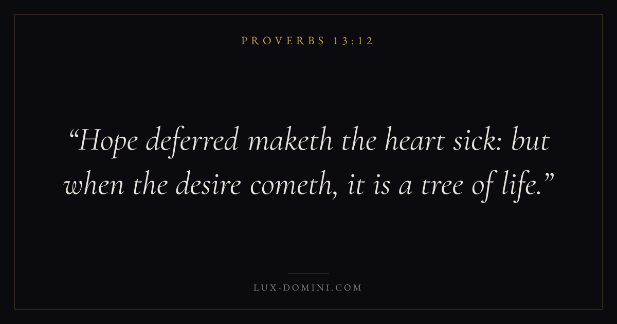 Hope deferred maketh the heart sick: but when the desire cometh, it is a tree of life.