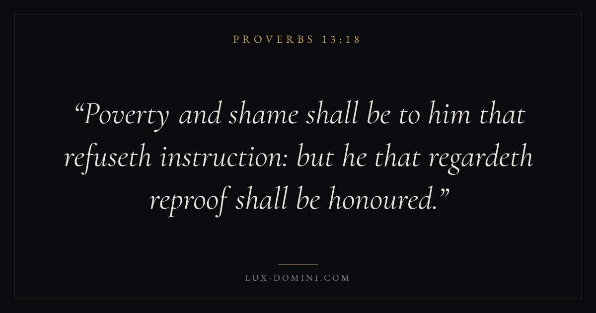 Poverty and shame shall be to him that refuseth instruction: but he that regardeth reproof shall be honoured.