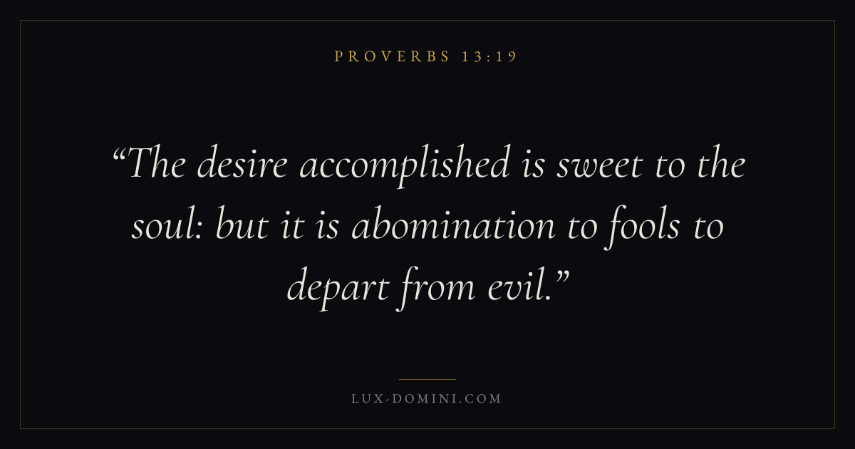 The desire accomplished is sweet to the soul: but it is abomination to fools to depart from evil.