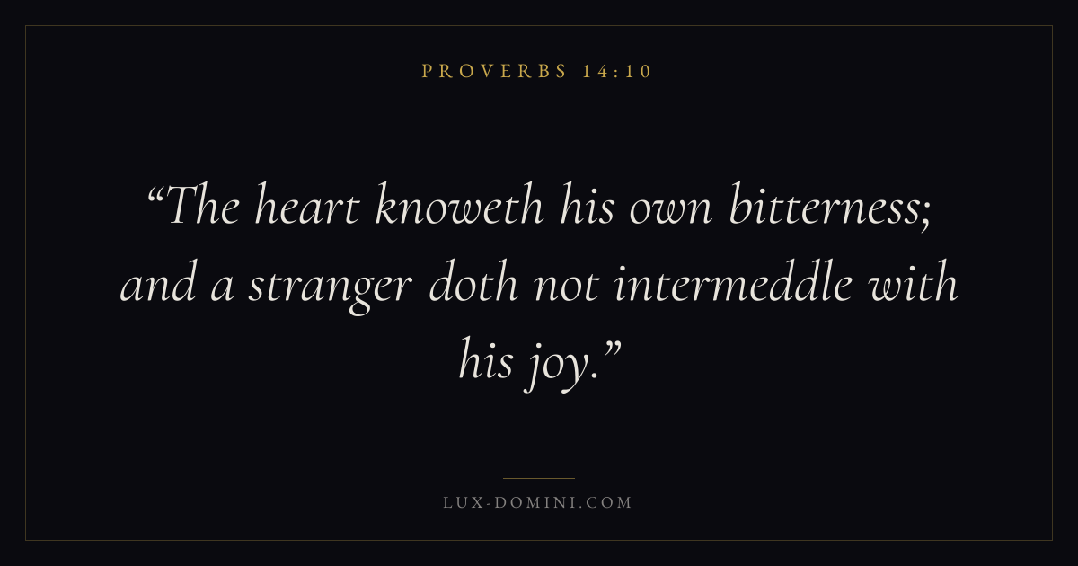 The heart knoweth his own bitterness; and a stranger doth not intermeddle with his joy.
