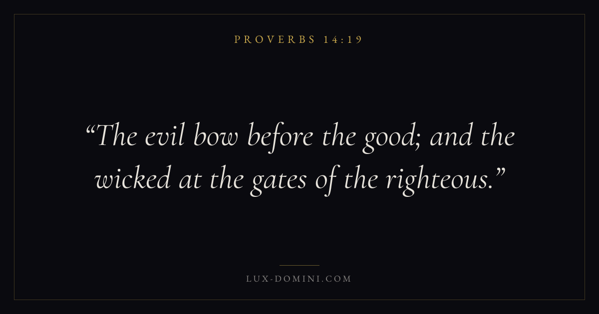 What does Proverbs 14:19 mean?