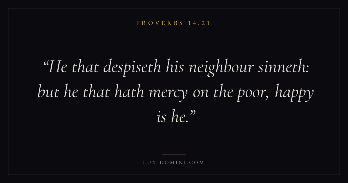 He that despiseth his neighbour sinneth: but he that hath mercy on the poor, happy is he.