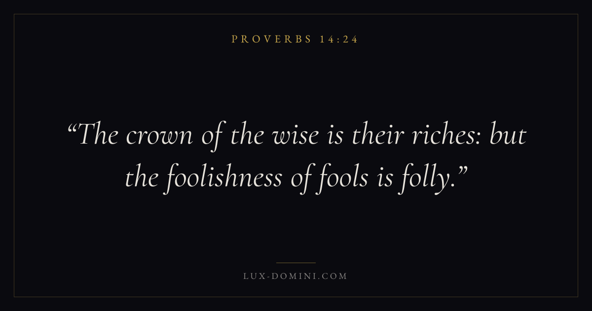 The crown of the wise is their riches: but the foolishness of fools is folly.