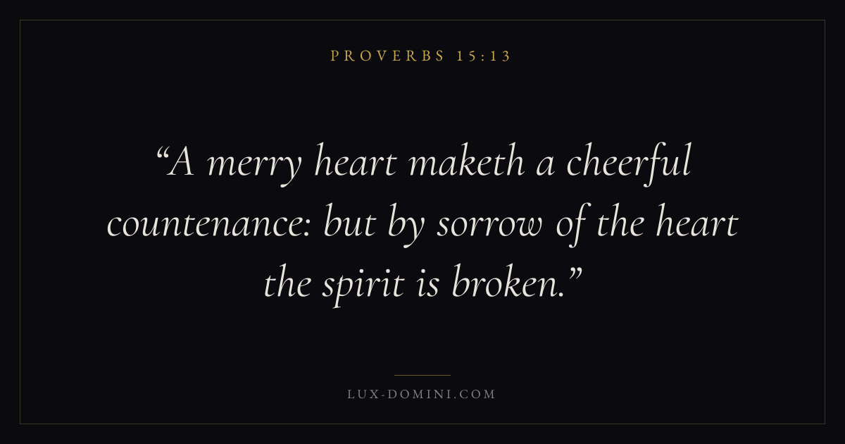 A merry heart maketh a cheerful countenance: but by sorrow of the heart the spirit is broken.