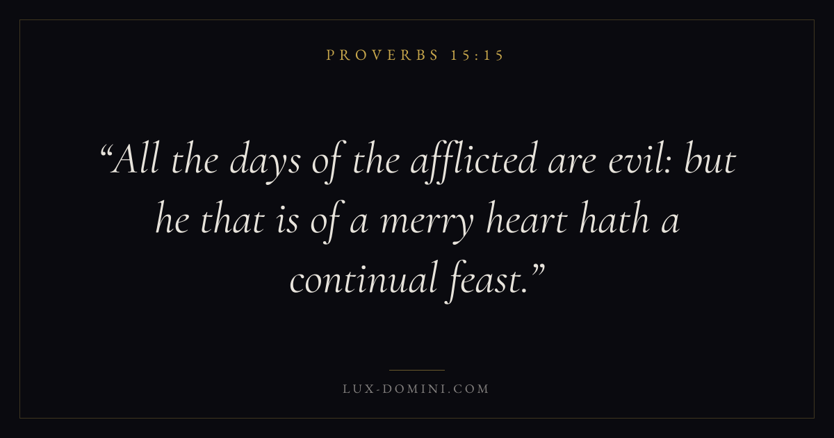 All the days of the afflicted are evil: but he that is of a merry heart hath a continual feast.