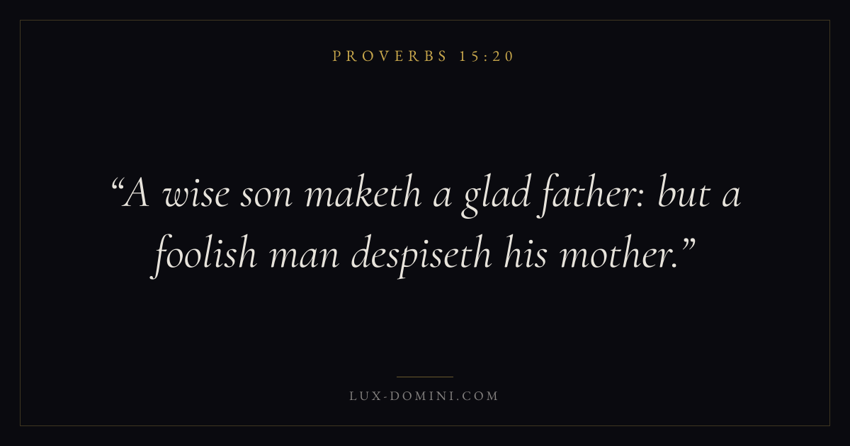 A wise son maketh a glad father: but a foolish man despiseth his mother.
