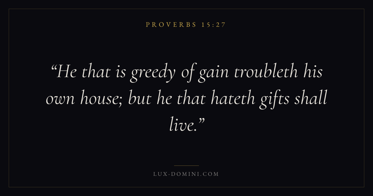 He that is greedy of gain troubleth his own house; but he that hateth gifts shall live.