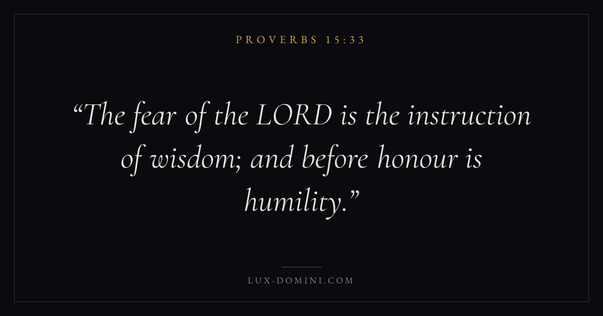The fear of the LORD is the instruction of wisdom; and before honour is humility.