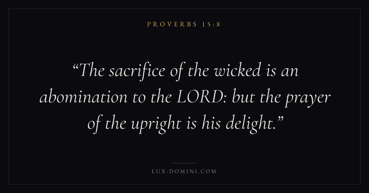 The sacrifice of the wicked is an abomination to the LORD: but the prayer of the upright is his delight.